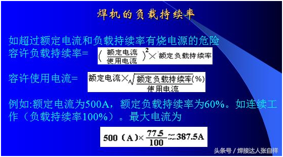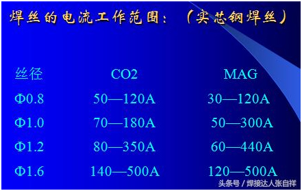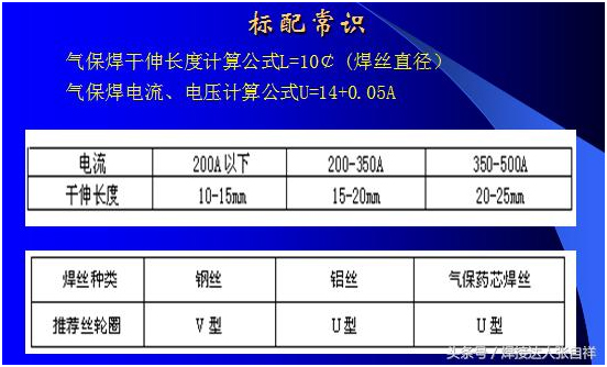 除了以上干伸長度對焊接的要求以外,對于送絲輪的使用可以參照上圖,焊接碳鋼、不銹鋼等實心焊絲采用的送絲輪為V型,焊接鋁合金或藥芯焊絲等材質較軟的焊絲可采用U型輪,如果選擇錯誤,可能會出現送絲不暢,參數匹配有誤等問題,另外,對于焊絲來講,每一種焊絲都有其焊接范圍,比如,如果采用1.2Mm焊絲,要想焊接500A的電流,就是把調節電流放到最大500A,也只能出300多安的電流就是這個道理,要想焊到500A,只需要不絲徑加到1.6或更粗的焊絲即可。這也是防止焊機超負載使用的一個方法,比如采用60%占載率的氣保500焊機,如果長時間焊接,那么根據公式就只能得出380A以內可以長時間焊接,為了避免焊工誤操作,可以選用1.2mm絲徑就不會出現超負載應用了,具體公式算法及焊絲需用電流表如下: