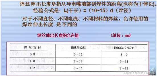 氣保焊的構造如上圖所示,在焊接過程中干伸長度的計算是從導電嘴到工件的距離,而不是從噴嘴到工件的距離,根據電流的大小,干伸長短也有不同的要求,如超出規范會影響焊接的穩定性和焊接質量。